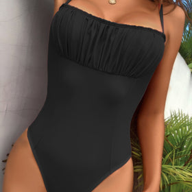Eleganter, zeitloser Ganzkörper-Bikini für Damen. Gerüschtes Oberteil für optimalen Halt und Komfort.