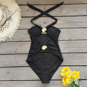 Badeanzug für Damen mit innovativem Wickeldesign und dekorativen Details von berg-feldt
