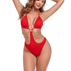 - Einzigartiges Design: Auffälliges Cut-Out betont Ihre Figur. - Dekorative Kettendetails: Eleganter, glamouröser Look. - Hochwertige Materialien: Weicher, elastischer Stoff für optimale Bewegungsfreiheit. - Vielseitig kombinierbar: Ideal für Strand, Poolpartys oder unter einem Sommerkleid. - Pflegeleicht: Maschinenwaschbar und schnelltrocknend.