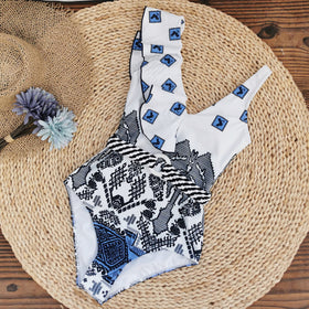 Entdecken Sie unseren Damen Einteiler Badeanzug: moderne Eleganz und perfekter Komfort vereint. Sein einzigartiges grafisches Design ist ein echter Hingucker am Strand oder Pool.