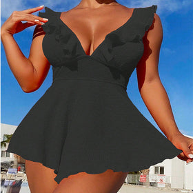 Dieser Damen Einteiler Badeanzug vereint Stil und Komfort. Romantische Rüschendetails am Ausschnitt und der tiefe V-Ausschnitt sorgen für einen aufregenden Look am Strand und Pool.