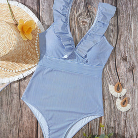 Badeanzug für Damen mit Rüschen, V-Ausschnitt, hoher Taille von berg-feldt