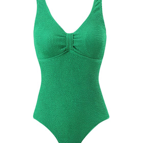 Eleganter einteiliger Badeanzug mit einzigartigem Rüschendesign und hochwertigem Stoff. Perfekt für Strand und Pool.