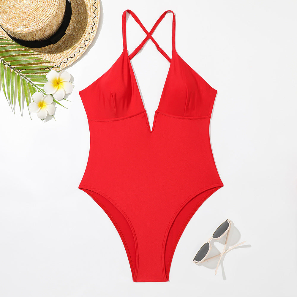 Badeanzug für Damen mit tiefem V-Ausschnitt und verstellbaren Trägern von berg-feldt
