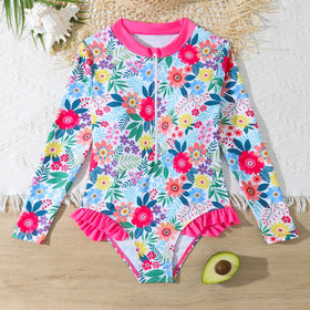 Badeanzug für Damen mit UV-Schutz, fröhlichem Blumenmuster und langen Ärmeln von berg-feldt