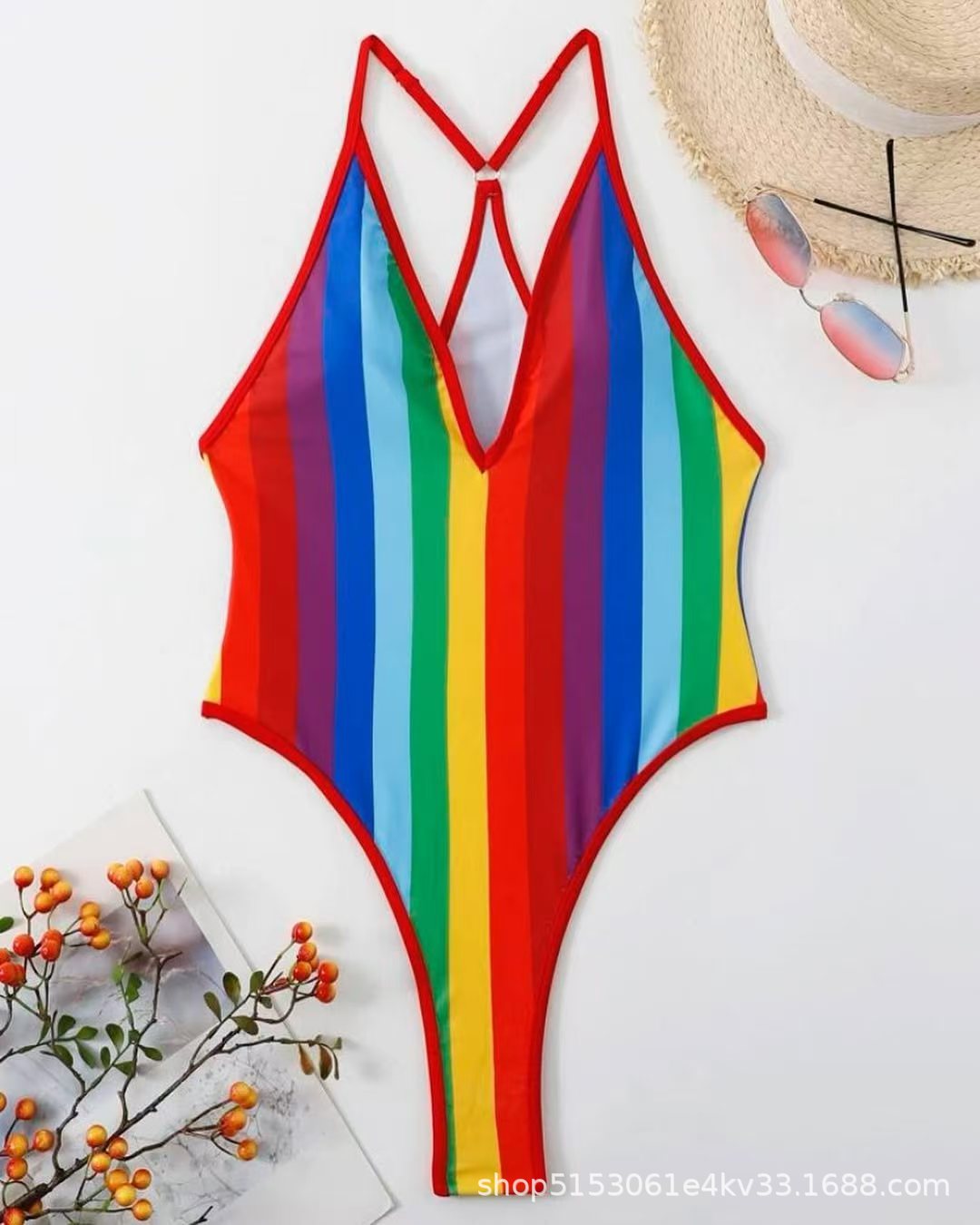 Entdecken Sie unseren neuen Damen Einteiligen Badeanzug mit auffälligem, mehrfarbigem Streifenmuster – perfekt für Strand oder Schwimmbad. Stil und Komfort vereint für einen anspruchsvollen Look.