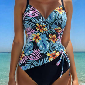 Eleganten Damen Badeanzug mit verstellbaren Trägern und floralem Design. Ideal für Strand und Schwimmbad. Komfort und Stil vereint.