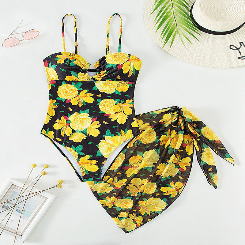 — Stil: Einteiliger Badeanzug mit floralen Akzenten