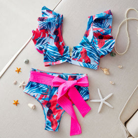 Attraktiver Damen Badeanzug mit einzigartigem Design für Stil und Komfort. Farbenfrohe, tropische Muster, ideal für Strand und Pool.