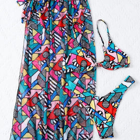 Verleihen Sie Ihrem Strand-Look mit unserem geometrisch gemusterten Badeanzug-Set das gewisse Etwas