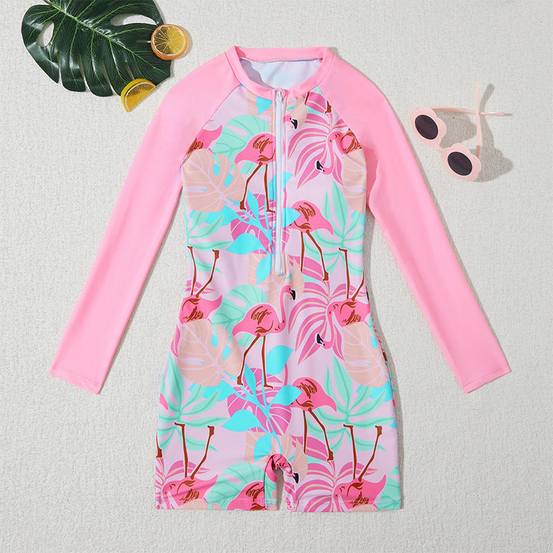 Badesuit für Damen mit langen Ärmeln und auffälligem Tropenmuster von berg-feldt