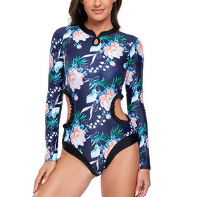 Badesuit für Damen mit langen Ärmeln und dekorativen Ausschnitten von berg-feldt