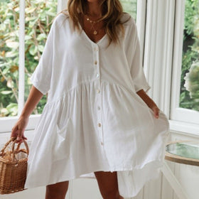 Entdecken Sie unser charmantes Damen Hemdkleid, perfekt für entspannte Sommertage. Es besticht durch lässigen Stil und atmungsaktive Baumwolle für höchsten Komfort.
