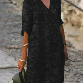 Baumwoll-Leinen Sommerkleid mit Blumenmuster...