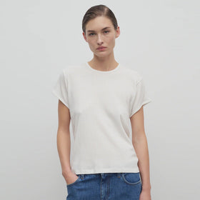 Elegantes Damen T-Shirt aus hochwertiger Baumwolle für Komfort und Stil. Lässiger Schnitt mit umgeschlagenen Ärmeln für einen modernen Look.