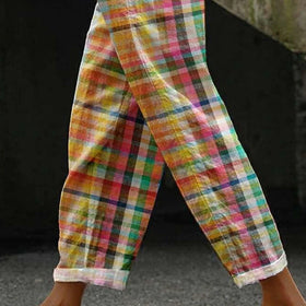 Entdecken Sie unsere bequeme & stylische Damen Leinenhose im Karomuster mit Zugband – perfekt für den Sommer.