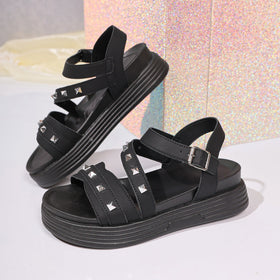 Entdecken Sie unsere Damen Komfortable Sandalen mit modischen Nietenakzenten und verstellbarem Riemen von berg-feldt. Diese stilvollen Sandalen sind perfekt für warme Tage und bieten höchsten Tragekomfort.