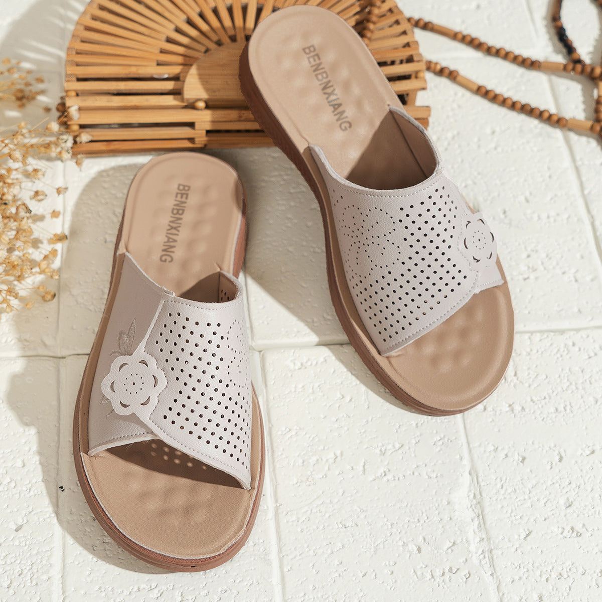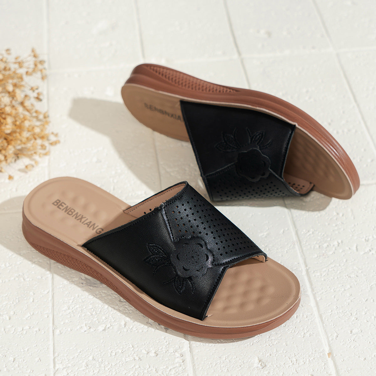 Bequeme Damen-Sommerschlappen mit Lochmuster-Blütenapplikation von berg-feldt