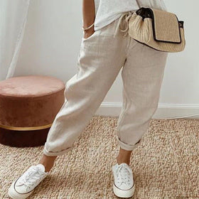 Bequeme Leinenhose für Damen mit schmalem Schnitt und Taschen von berg-feldt