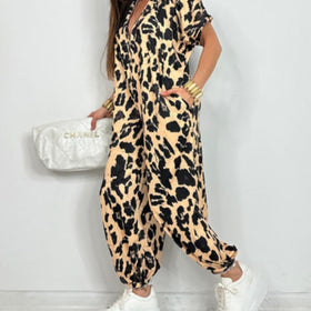 Entdecken Sie den ultimativen Komfort mit unserem Damen Lässiger Jumpsuit, der sowohl stilvoll als auch funktional ist. Dieser Jumpsuit besticht durch ein trendiges Leo-Muster.