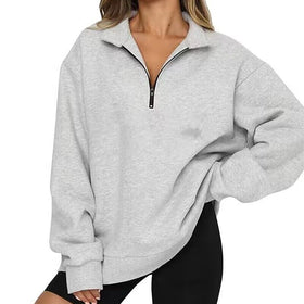 Entdecken Sie den perfekten Begleiter für entspannte Tage und sportliche Aktivitäten: den Damen Oversized Pullover mit Reißverschluss von berg-feldt. Stil und Komfort vereint!