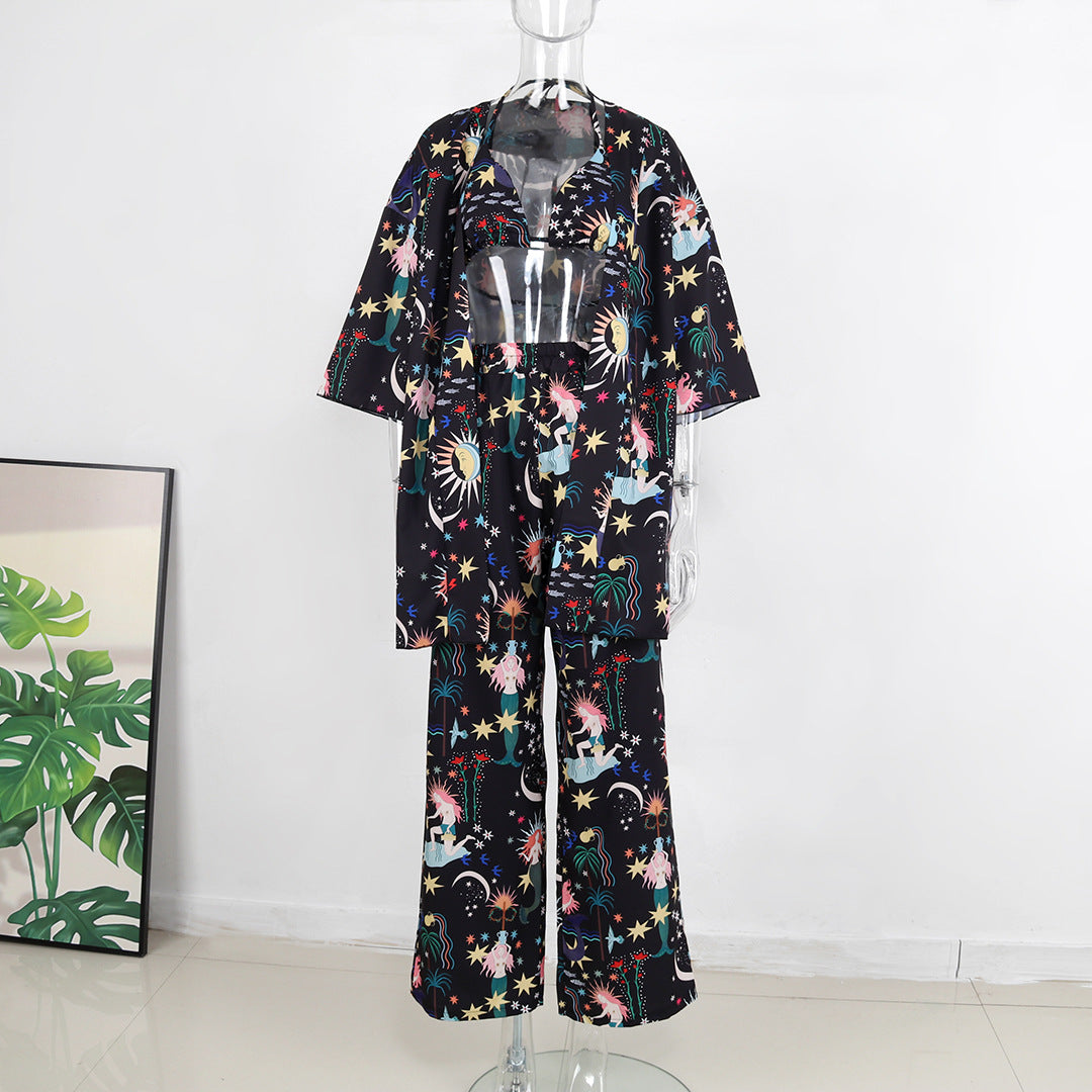 Entdecken Sie unser stilvolles Damen Schlafanzug-Set mit einzigartigem grafischem Print. Eleganz und Komfort vereint für entspannte Abende.