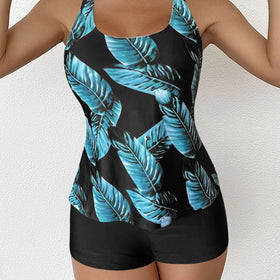 Stilvolles Damen Bademoden-Set mit floralem Design für Strand und Pool. Elegantes Oberteil und bequeme Shorts für optimalen Komfort.
