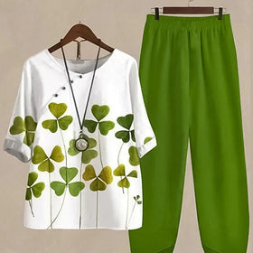 Entdecken Sie unser Damen gemütliches Freizeit-Set: lässiges Oberteil & bequeme Hose, ideal für entspannte Tage.
