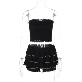 Berg-Feldt Damen Crop-Top und Rüschenshorts Set