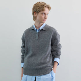 Berg-Feldt Herrenpullover mit Kragen und Knopfleiste