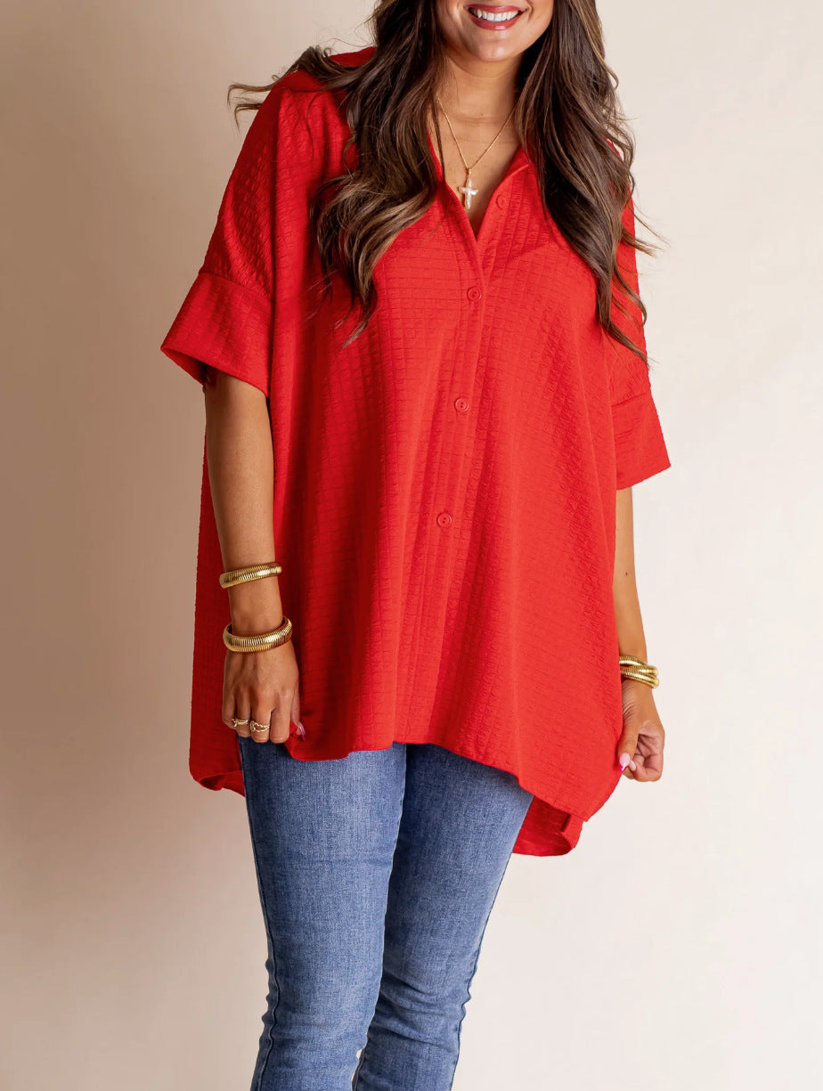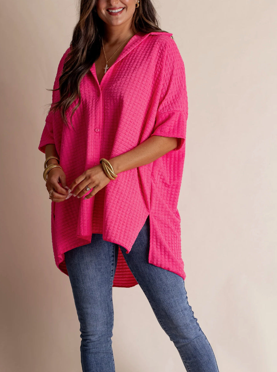 Die Damen Oversized Hemdbluse von berg-feldt ist ein stilvolles und vielseitiges Kleidungsstück für Alltag und besondere Anlässe. Aus hochwertigem, strukturiertem Stoff gefertigt, bietet sie einen lässigen, komfortablen Schnitt.