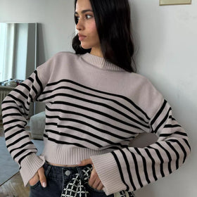 Entdecken Sie unseren Damen Grobstrickpullover mit modernem Streifenmuster! Komfort und Eleganz vereint in einzigartigem Design. Hochwertige, weiche Baumwolle garantiert angenehmes Tragegefühl.