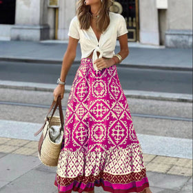 Entdecken Sie unseren stilvollen Damen Maxirock mit lebendigem Mustermix. Elegant und bequem, perfekt für diverse Anlässe.