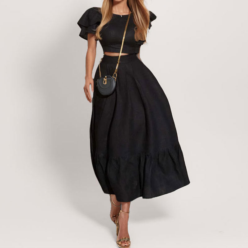 Weit schwingender Damen-Maxirock mit Rüschen und tailliertem Bund von berg-feldt