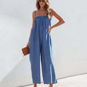 Entdecken Sie die perfekte Kombination aus Stil und Komfort mit unserem Femme Wide-Leg Denim Jumpsuit mit verstellbaren Trägern berg-feldt. Dieses vielseitige Stück ist für die moderne Frau entworfen, die sowohl Mode als auch Funktionalität schätzt.