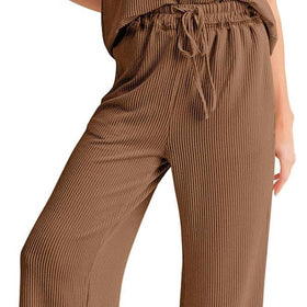 Entdecken Sie unseren Damen Jumpsuit mit elegantem Rippdesign und weitem Bein – perfekt für Freizeit. Hochwertiges, dehnbares Material sorgt für Komfort.