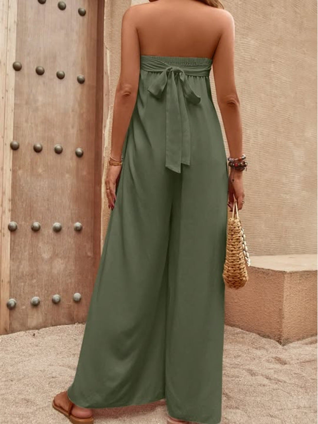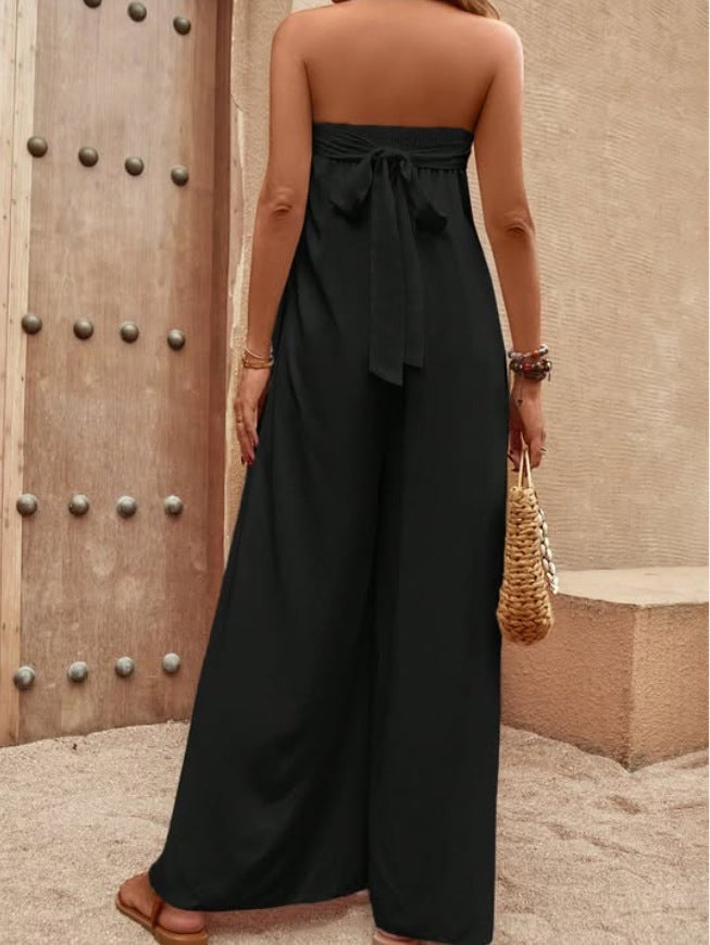Elevieren Sie Ihren Stil mit unserem schicken trägerlosen Jumpsuit mit weitem Bein
