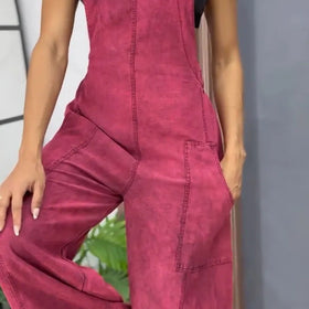 Die stylische Damen Latzhose von berg-feldt vereint Komfort und modisches Design mit weitem Bein und praktischen Taschen. Ideal für Freizeit und Sommer.