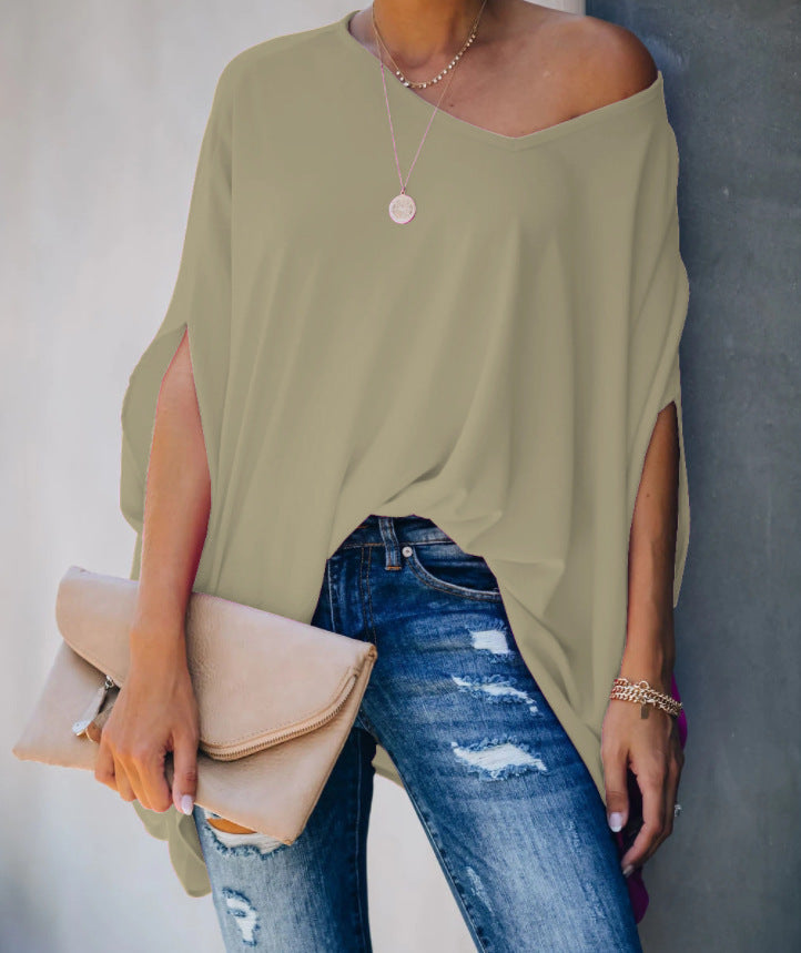 Entdecken Sie die perfekte Kombination aus Stil und Komfort mit unserer Damen Oversized Tunika mit V-Ausschnitt und lässigem Schnitt von berg-feldt. Ideal für die modebewusste Frau.