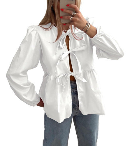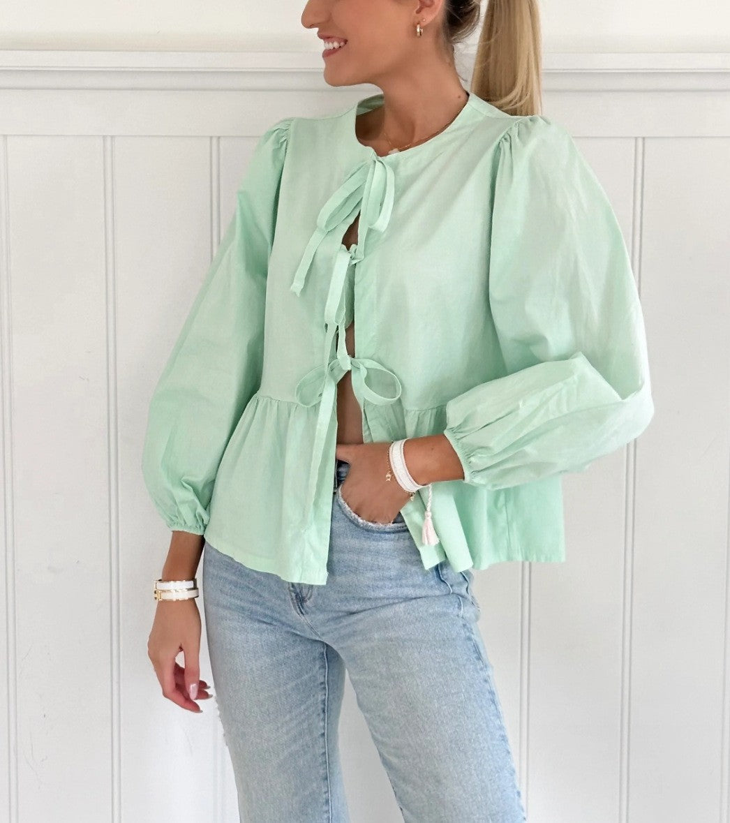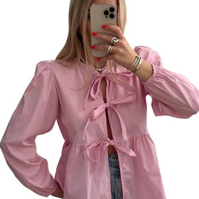 Diese Damen Bluse mit Schleifen-Detail kombiniert modischen Stil mit höchstem Tragekomfort. Der lockere Schnitt sorgt für eine lässige Silhouette, während die Raffungen an den Ärmelenden ein raffiniertes Design bieten. Ideal für unterschiedliche Anlässe, lässt sich dieses Oberteil sowohl zu Jeans als auch zu eleganten Röcken kombinieren.