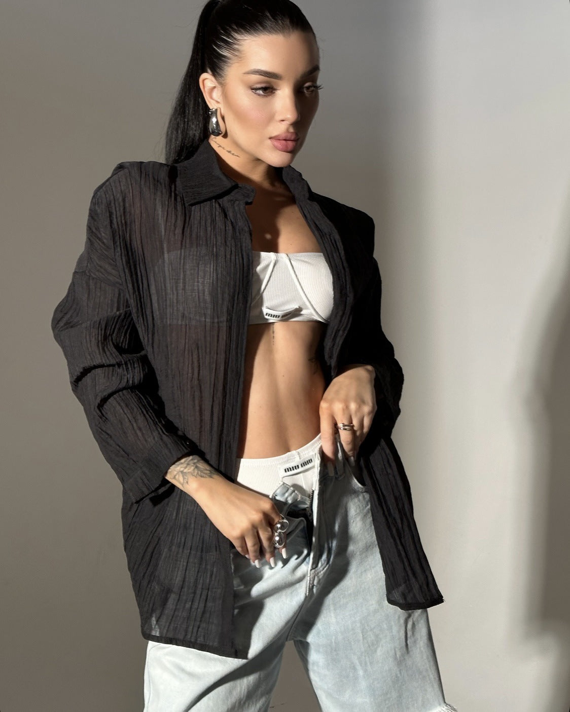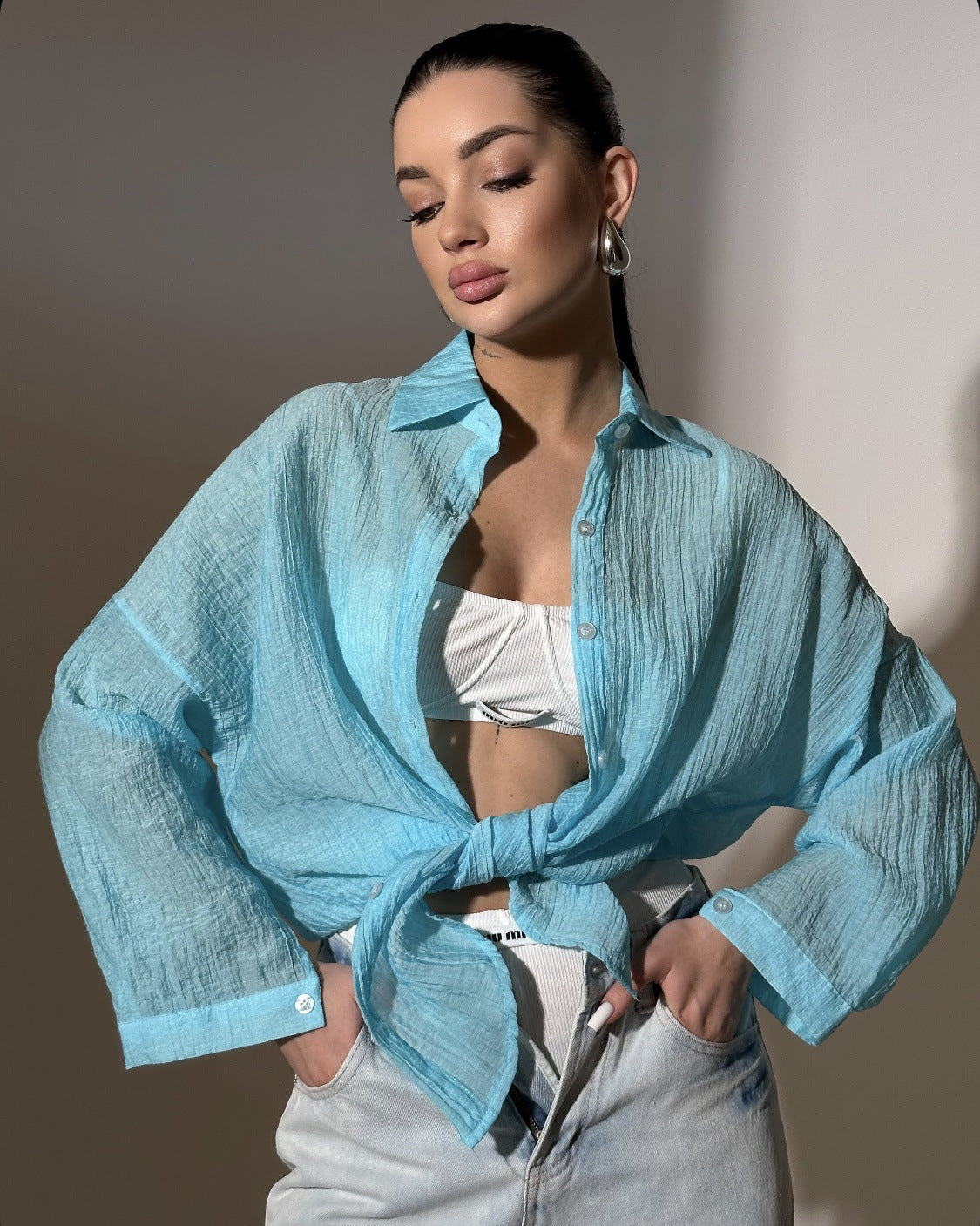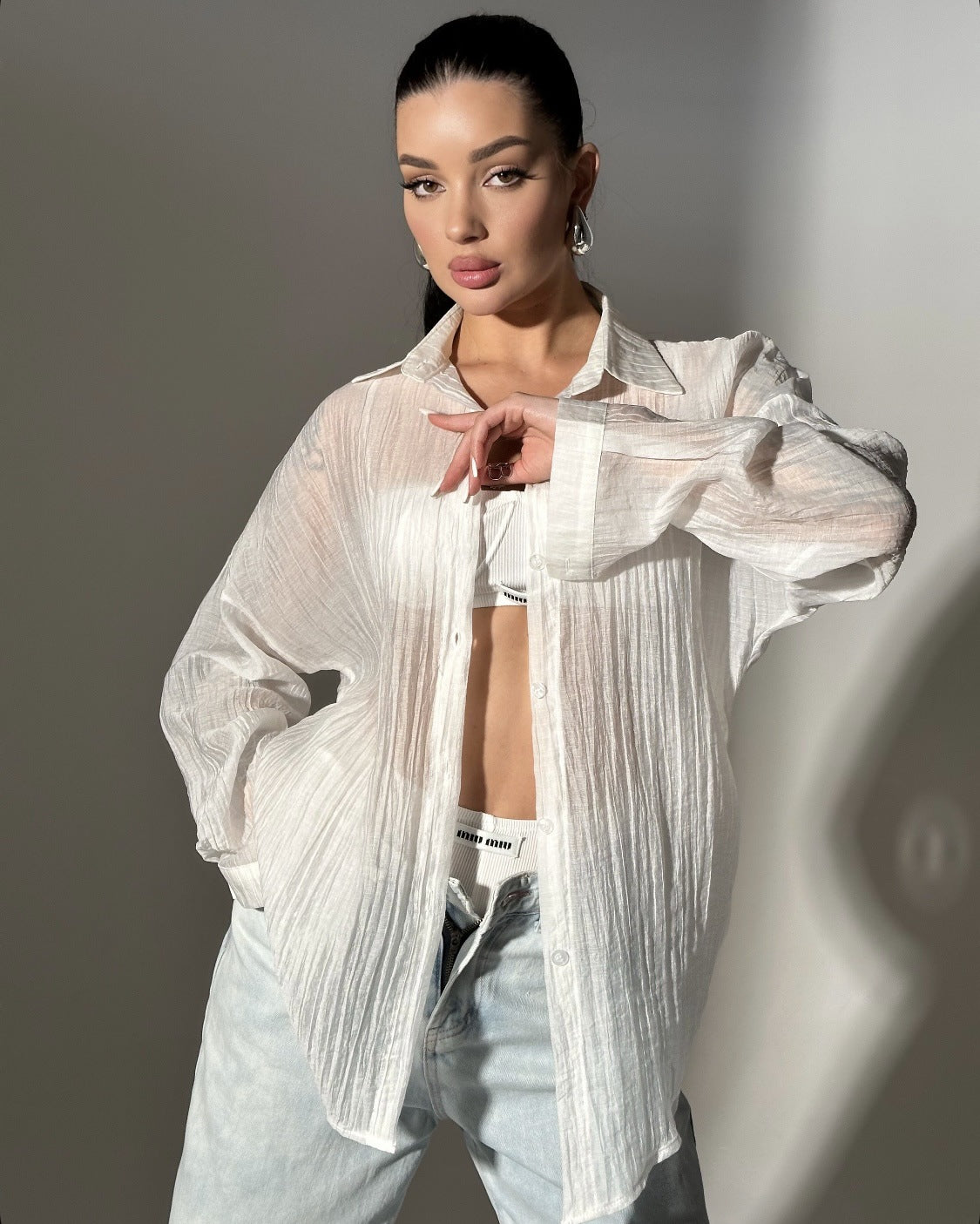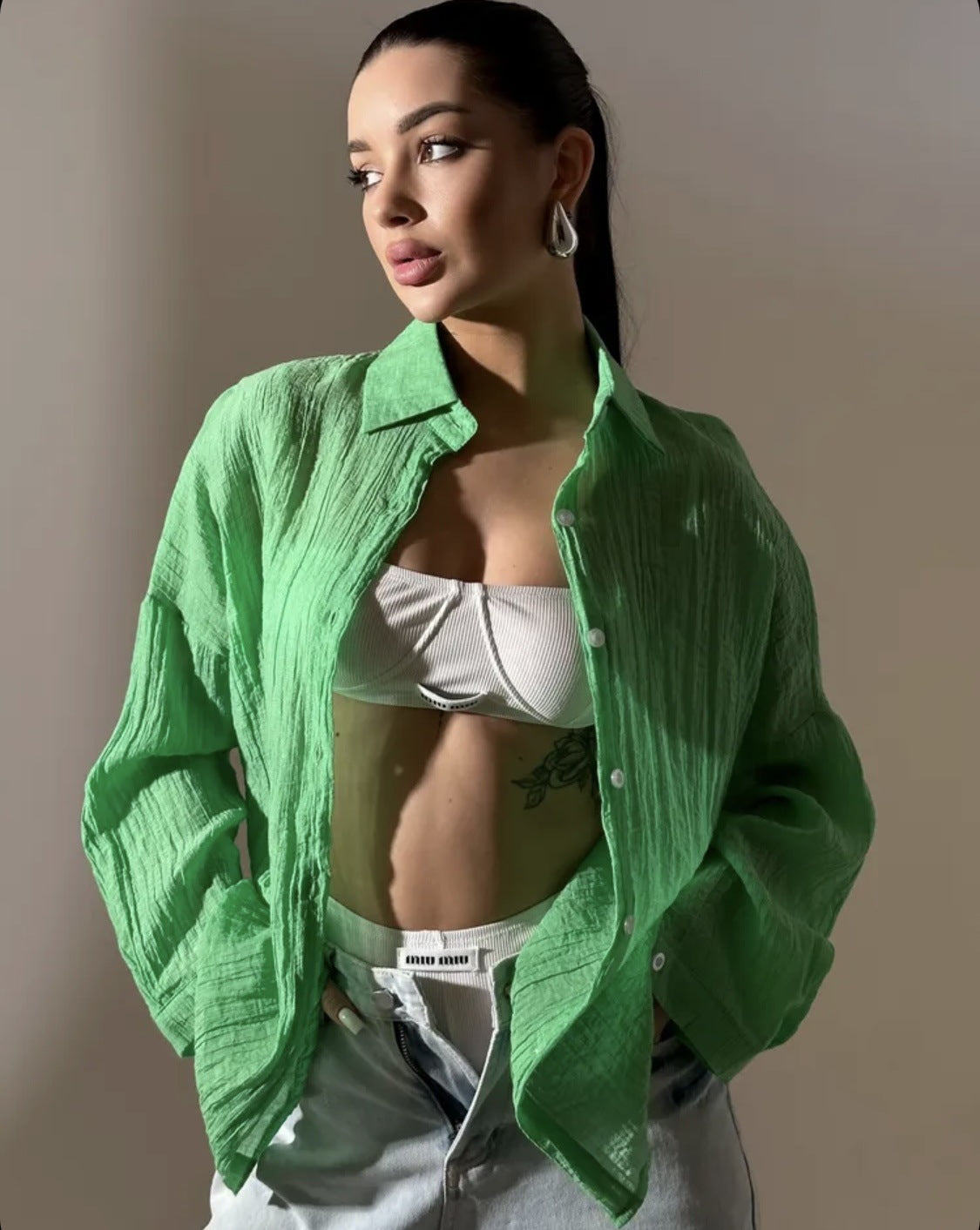 Stilvolle Damen Lockere Chiffon Bluse, perfekt für Frühling & Sommer. Lässiger Schnitt, leichtes Material, moderner Look.