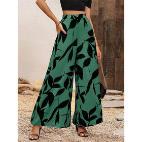Schicke Hosen mit weitem Bein und Blattmuster für die moderne Frau. Der Blattdruck verleiht ein natürliches Flair, perfekt für Freizeit oder formelle Anlässe.