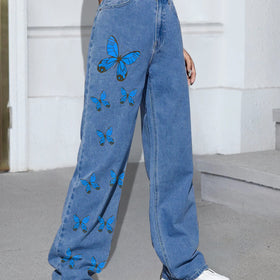 Weite Damenjeans mit buntem Schmetterlingsmuster von berg-feldt