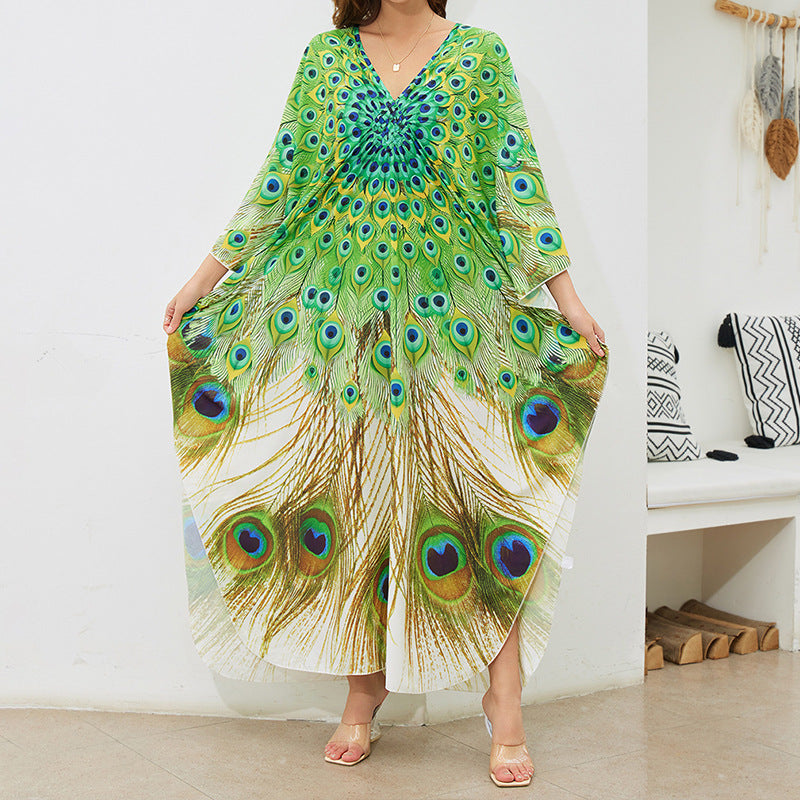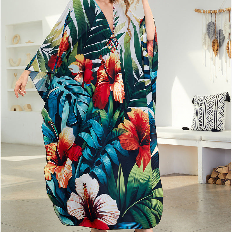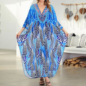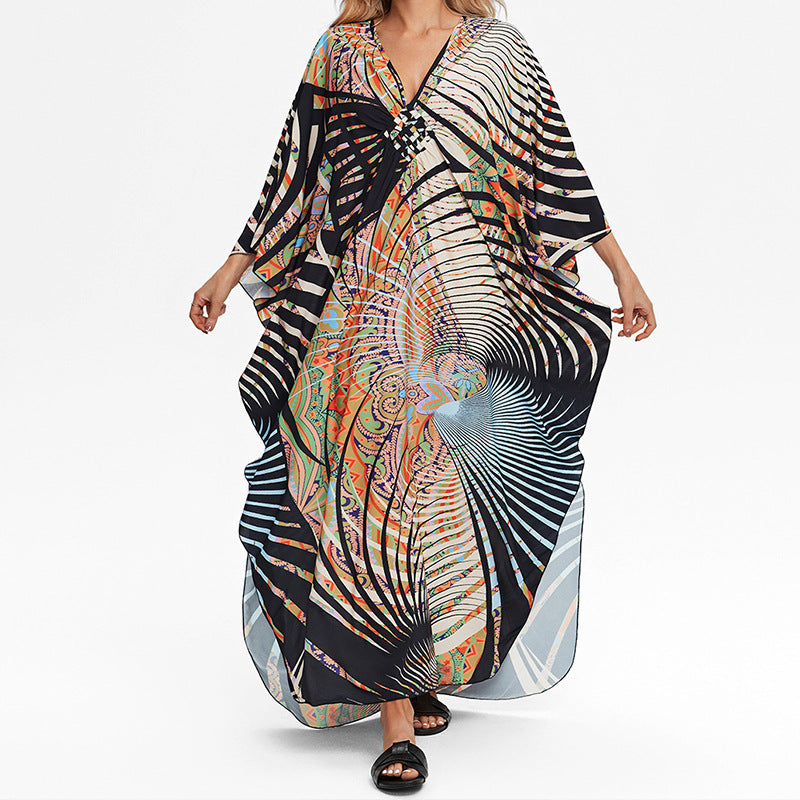 Die exquisite Damen Kaftanrobe von berg-feldt besticht durch auffällige Muster und hohen Tragekomfort. Ideal für entspannte Sommerabende oder besondere Anlässe.