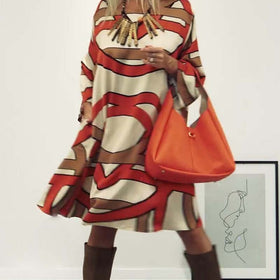 Entdecken Sie unser stilvolles Damen Boho-Kleid mit weitem Schnitt und kunstvollem Muster, perfekt für warme Tage.