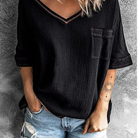 Elegantes, lässiges Damen Shirt mit V-Ausschnitt für entspannte Sommerlooks. Lockerer Schnitt, kurze Ärmel.