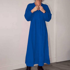 Elegantes Damen Maxikleid mit lässigem V-Ausschnitt und weiten Ärmeln – Komfort und Stil vereint. Ideal für Alltag und besondere Anlässe.