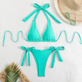 Unser beeindruckendes Femme Adjustable Tied Triangle Bikini Set vereint Komfort und Stil für die modebewusste Schwimmerin. Das klassische Dreieck-Oberteil mit verstellbaren Bindebändern sorgt für individuelle Passform und schmeichelt der Silhouette.
