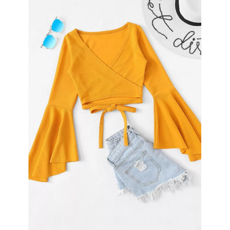 Erheben Sie Ihre Garderobe mit diesem atemberaubenden Femme Wrap Crop Top mit einzigartigen Ausstellungsärmeln. Entworfen für die modebewusste Frau, strahlt dieses Oberteil Eleganz und Komfort aus. Das Wickeldesign betont die Taille, das Bindeband ermöglicht anpassbare Passform.