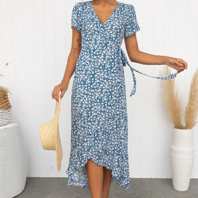 Umarmen Sie Ihren Stil mit dem Femme Floral Wrap Midi Dress – die perfekte Wahl für Mode und Komfort.